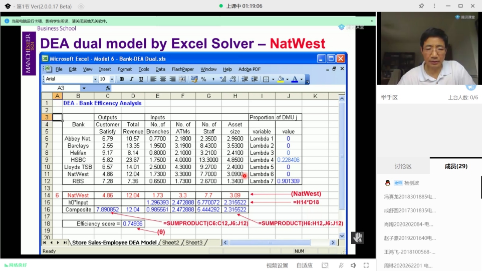 受永利集团304am登录蒋雯教授、邓鑫洋副教授邀请,英国曼彻斯特大学商学院决策与认知科学研究中心主任Jian-Bo Yang教授于2020年8月21日至2020年8月28日在我校举办的“暑期国际学堂”活动中,在线讲授了“Risk, Performance and Decision Analysis / 风险,绩效与决策分析”课程。我校包括本科生、硕士生、博士生在内的30余名学生参加了该课程的学习。