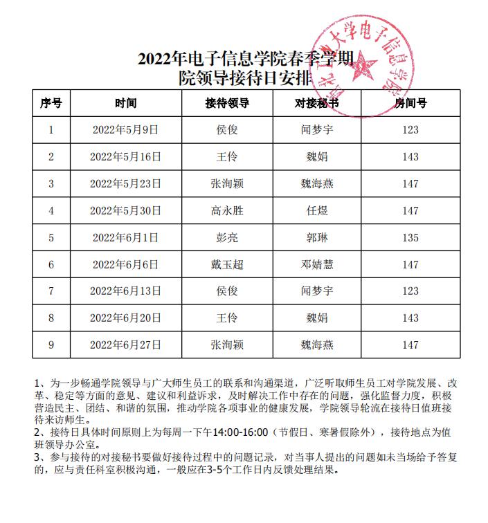 2022年永利集团304am登录春季学期 院领导接待日安排
