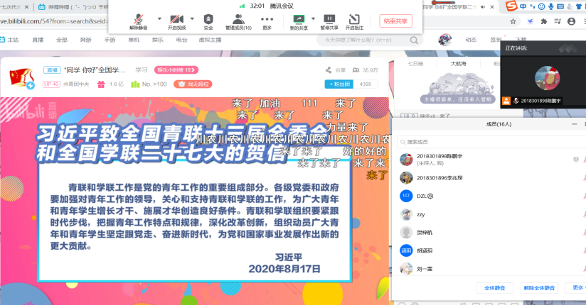 永利集团304am登录团委学生会、各团支部积极响应团中央号召,组织全体成员在各大平台观看了在线直播,通过“学习强国”学习平台、央视新闻客户端及共青团中央微信、微博、B站、快手、抖音、微视、斗鱼、虎牙、今日头条等官方账号及平台观看,共享这场青春的盛会。
