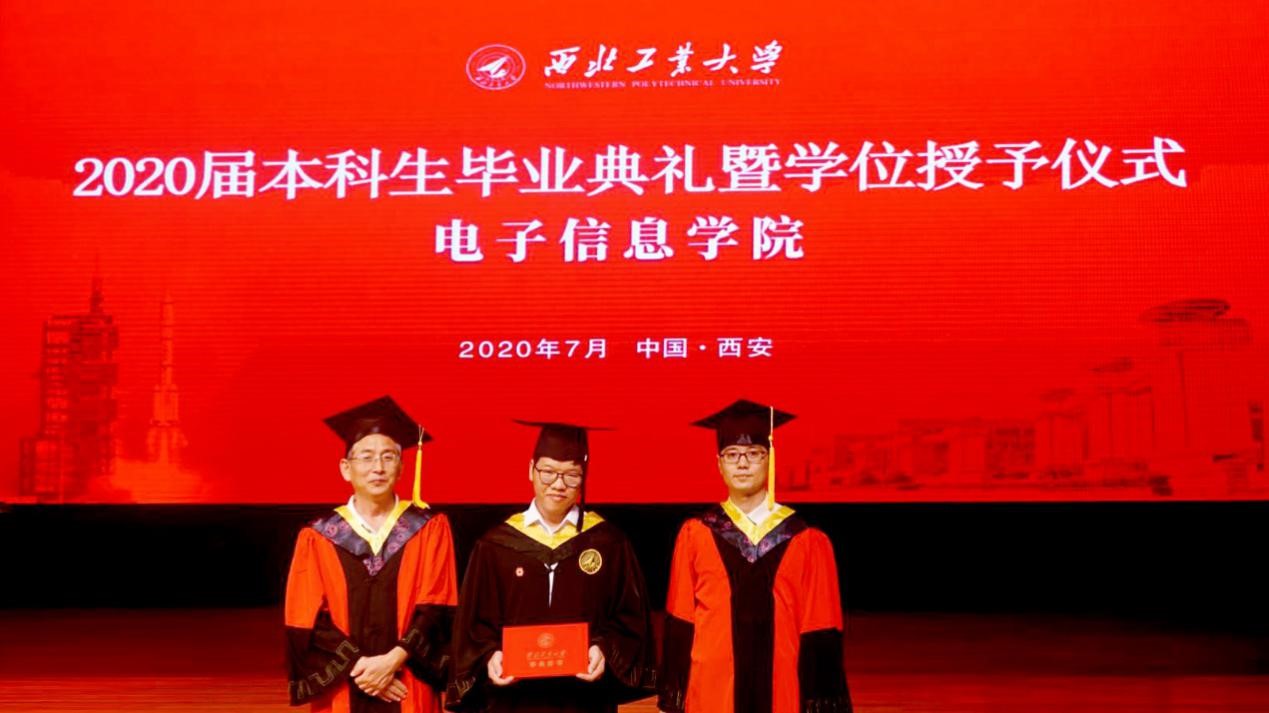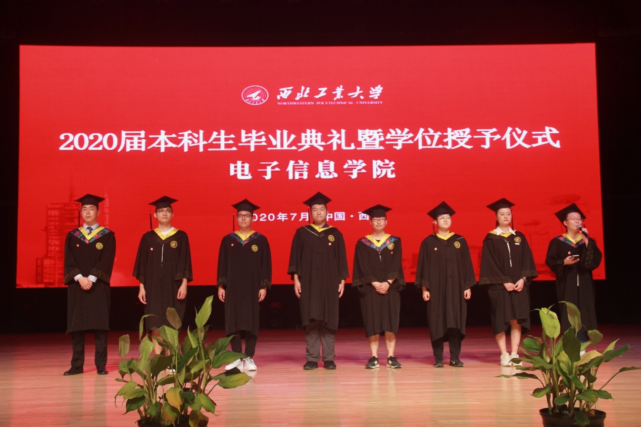 风雨萃英路,薪火传后人。中华灿烂,工大无疆!永利集团304am登录2020届全体本科毕业生合唱《永利集团304am登录校歌》,歌声悠扬,字字铿锵。学院四位老师王伶、李建瀛、冯晓毅、周巍为同学们一个个拨穗、颁发毕业证、合影留念。