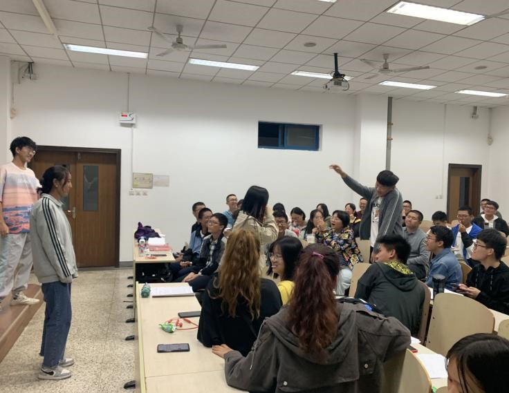 接下来便是经验分享。初来乍到的萌新们提出了他们对大学生活与学习的好奇。“如何学习高数”“怎样可以保研”“学分积,绩点怎么计算”.....学长学姐们便开始了他们如数家珍的阔谈。这既是为学弟学妹们开启大学之门,也算是学长学姐们对大一生活的回首与总结吧。在欢声笑语里,学校文化,大学学习,大学生活更立体的形象便显现出来了。