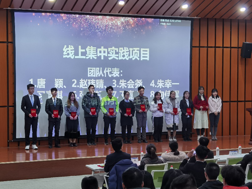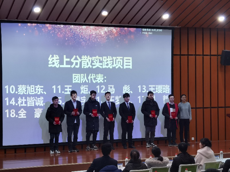 大会为优秀实践团队、先进个人、优秀线上集中项目、优秀线下分散实践项目进行表彰并颁发荣誉证书。我院赵玮晴、蔡旭东、马杰、史磊、刘畅等作为获奖代表上台领奖,校团委对他们所取得的成绩给予了充分的肯定与高度的赞誉。