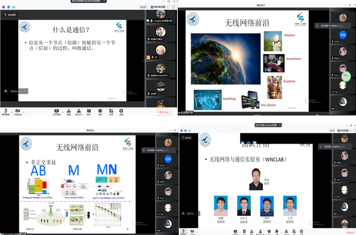 杨懋老师首先从“下一代无线网络与通讯”出发,深入浅出地讲述了“什么是通信”以及通信系统的各部分概念及功能,接着介绍了非正交多址、网络智能化、通信感知一体化、无线网络标准化等无线网络前沿技术,最后介绍了课题组及主要研究方向。
