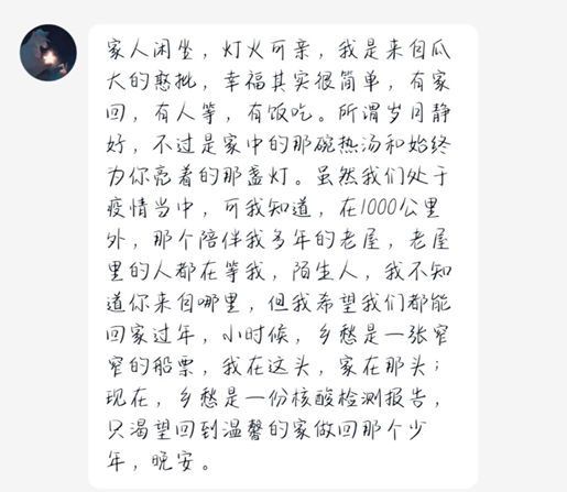 由于疫情加剧,12月23日西安市进入封闭管理。政策的变化让西工大的同学们陷入对未知的迷茫中。此时,“互助文档”的出现,缓解了同学们对物资供应的不安;“晚安计划”的出现,更是抚慰了同学们焦躁不安的心情。为此,永利集团304am登录“信愿启航,微光成炬”实践队采访了“互助文档”及“晚安计划”的策划人——永利集团304am登录团委副书记徐健凯。