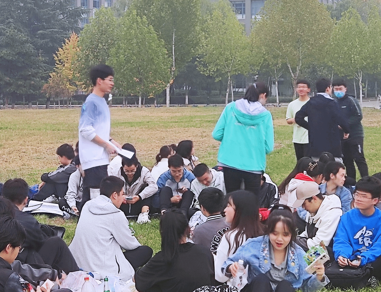 秋天的金黄,是一抹绝色。为增进永利集团304am登录团委、学生会成员们的感情,提高凝聚力,更好地完成工作,在这个秋高气爽的金色的日子里,成员们在海天苑草坪上迎来了一个传统的破冰活动——新生见面会。