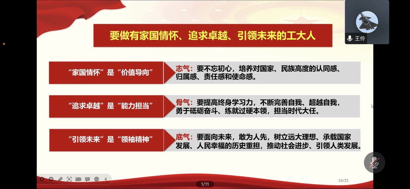 结合党的二十大报告,王伶向同学们阐述了党实施科教兴国战略、人才强国战略、创新驱动发展战略的重要性,向同学们阐述了新一代科研工作者应该着力研究的关键领域,包括和学院关系较为密切的高端芯片、基本算法等多种前沿基础科技领域,他鼓励同学们要做有家国情怀、追求卓越、引领未来的工大人。