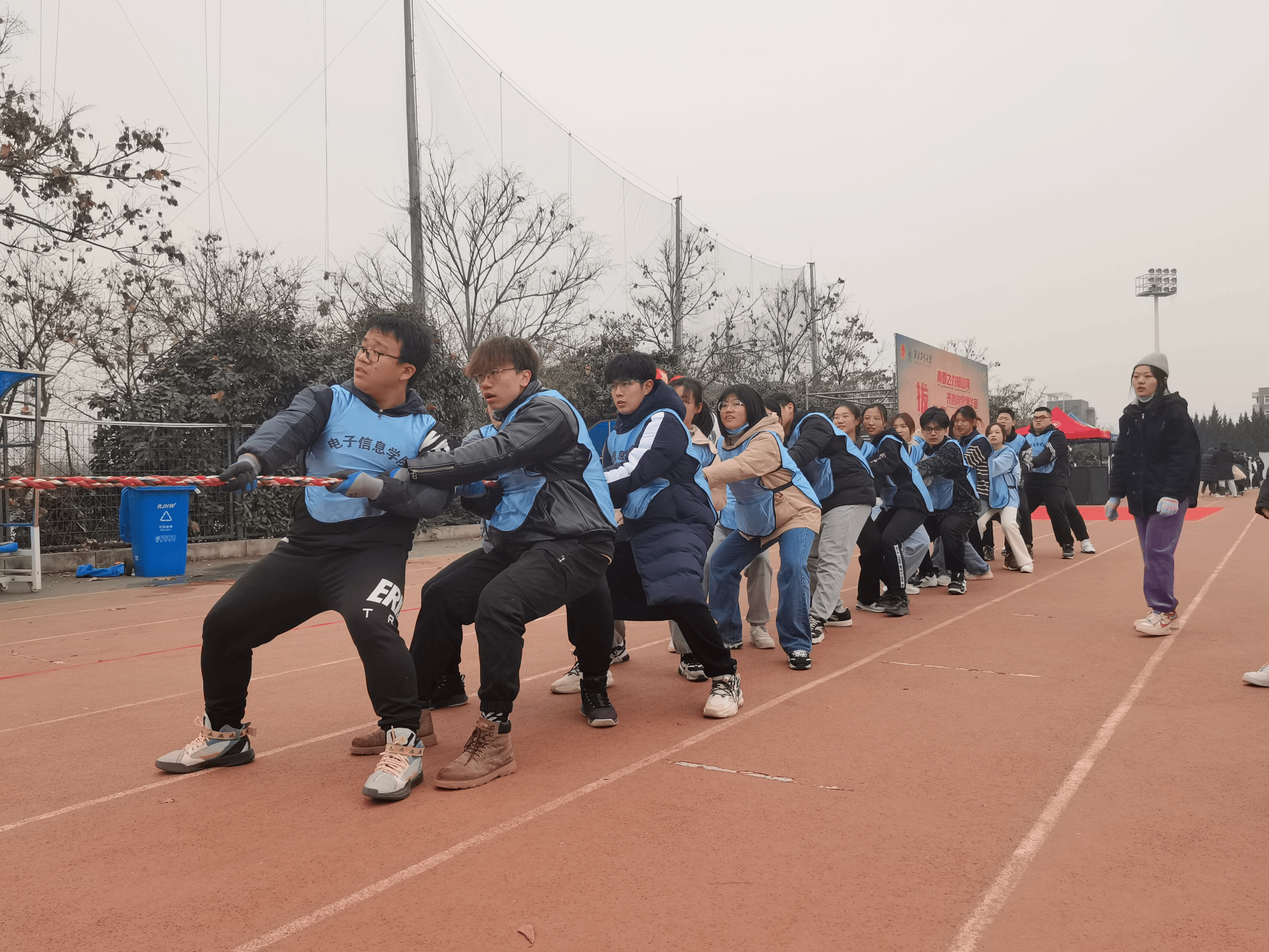 由校团委举办的“青春之力撼山河,齐心向党谱华章”纪念 “一二·九”运动87周年拔河比赛于12月4日在长安校区星天苑操场顺利开展。
