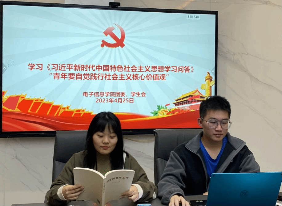 图为团委学生会骨干集体学习“如何理解习近平新时代中国特色社会主义思想是当代中国马克思主义、21世纪马克思主义”