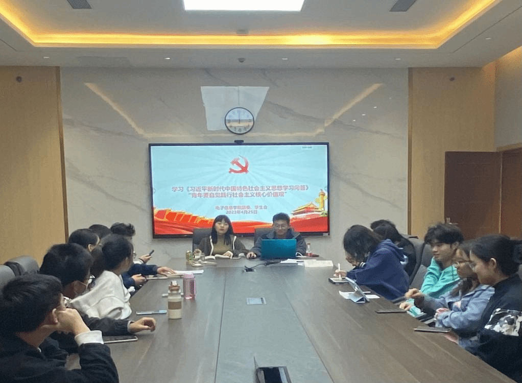 图为团委学生会骨干集体学习“青年要自觉践行社会主义核心价值观”