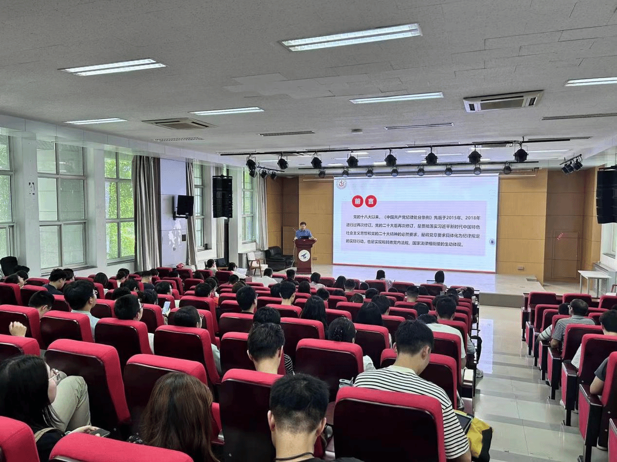 5月13日下午,永利集团304am登录党委书记侯俊以“深化纪律教育 提升党性修养”为题,面向各党支部书记、党支部委员、所联系党支部、发展对象共160余人讲授纪律专题党课。