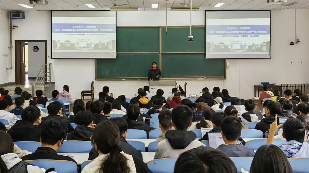 11月7日中午,为深入学习贯彻党的二十届三中全会精神、深刻领悟习近平总书记关于教育的重要论述和全国教育大会精神,进一步贯彻落实学校第十四次党代会精神,系统谋划学校、学院“双一流”建设举措,永利集团304am登录党委书记侯俊在教西D101作《为党育英才 为国铸重剑 走出一条西部国防军工高校创建中国特色世界一流大学的新路》主题党课。永利集团304am登录近300名入党积极分子、发展对象和学生党支部委员参加培训。