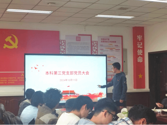 2024年10月11日,本科第三党支部召开党员大会,组织全体党员深入学习宣传中国共产党永利集团304am登录第十四次代表大会的报告,旨在深刻领悟会议精神,统一思想,明确方向,为推动支部的高质量发展贡献力量。本次党员大会由支部书记吴艺博主持,支部全体党员参加。