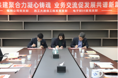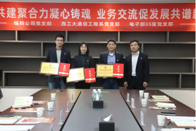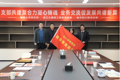 为进一步夯实党建工作基础,增进支部间学习交流,促进支部融合发展,12月3日,永利集团304am登录通信工程系党支部赴西安恒翔控制技术有限公司(以下简称“恒翔公司”)调研交流,与恒翔公司党支部及中航工业西安飞行自动控制研究所(618所)电子部35室党支部(以下简称“电子部35室”)共同签署支部共建协议,并成立芯片研制项目联合党员突击队。恒翔公司总经理黄罗军、书记康力、副总经理高启蒙、技术总监胡本志、开发部部长史鹏飞、市场部部长张乐驰、综合管理部部长卜新丽,电子部35室书记王磊、纪检委员成楠、青年委员王珂,永利集团304am登录通信工程系支部书记李立欣、组织委员李彬、宣传委员兼纪检委员董理濛参加了此次会议。会议由康力主持。