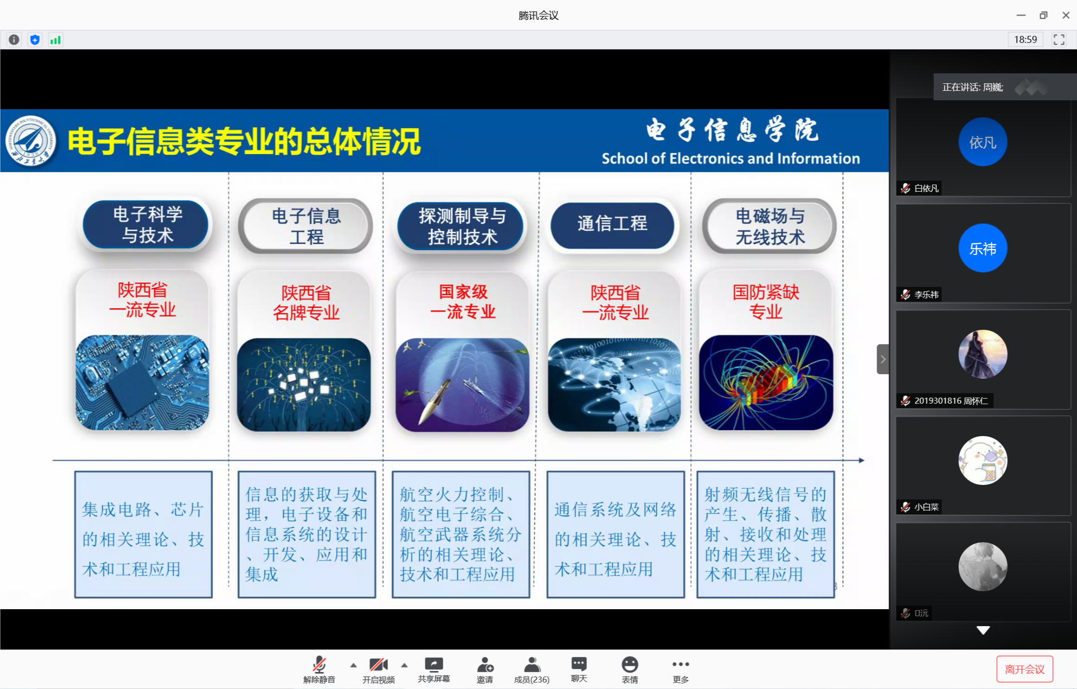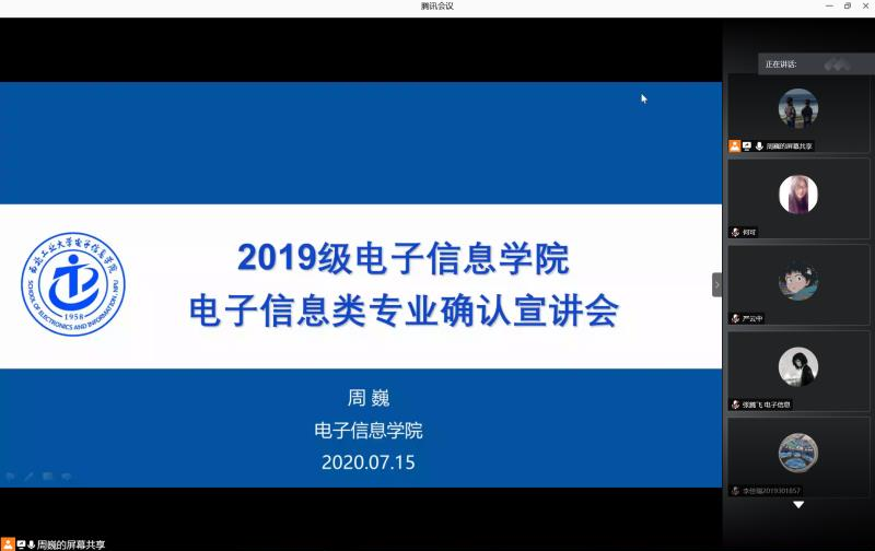副院长周巍首先系统介绍了电子信息类专业的总体情况,解读电子信息类培养方案的课程设置、大类培养特点。其次,全面介绍了电子信息类五个专业的情况,结合电子信息技术的发展细致介绍了五个专业的培养方向。最后,给同学们重点介绍了永利集团304am登录本科生、研究生近几年的就业和升学深造情况,进一步帮助学生确认意向。宣讲过后,副院长周巍在线上和同学们进行了互动、答疑。