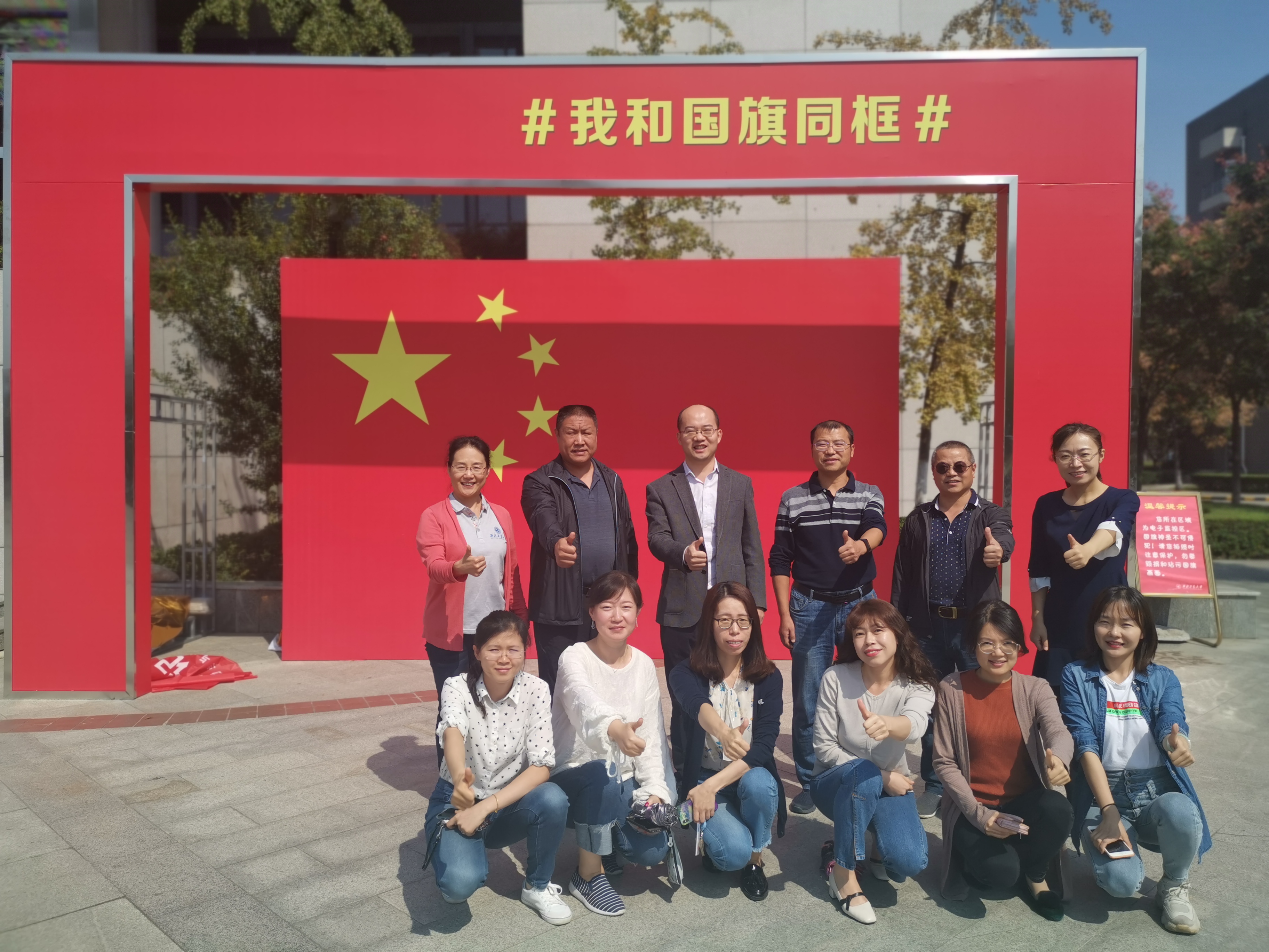 会后,同志们来到学校翱翔学生活动中心广场的 “与祖国同框”前合影。大家站在国旗下,怀着崇敬的心情,向祖国母亲告白,祝福伟大祖国生日快乐!