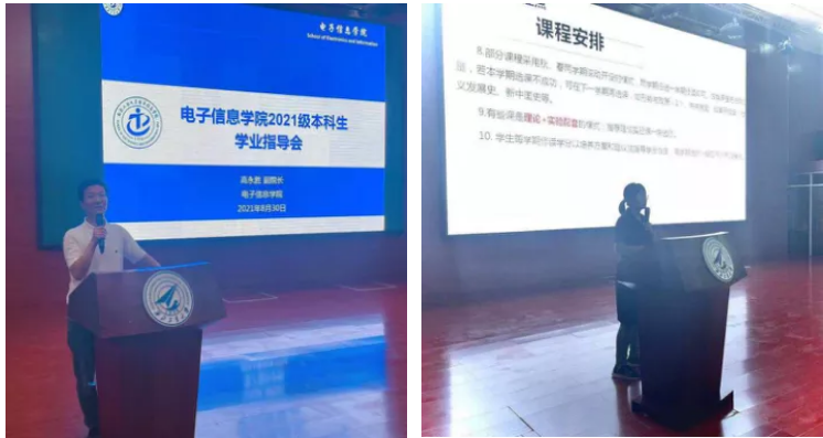 丹桂飘香,秋风送爽,永利集团304am登录迎来了2021级280余名本科生。为帮助新生了解电子信息类专业的培养方案和课程体系,指导同学们更加科学合理规划自己的大学生涯,2021年8月30日,也是正式开学第一天,永利集团304am登录在教学西楼D100召开新生学业指导宣讲会。永利集团304am登录副院长高永胜副教授、院长助理王丽、校教务处仇梦一、学院教务秘书宫予涵以及各班班主任参加了此次宣讲会,会议由2021级本科生辅导员吴宝龙副教授主持。