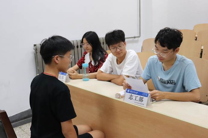 经过2天的报名阶段,永利集团304am登录团委、学生会于9月10日、11日晚,在教西B205、206进行了现场面试。各部门负责人准备了具有针对性的考查问题,与新生展开面对面的交流,各部门面试工作有序进行。