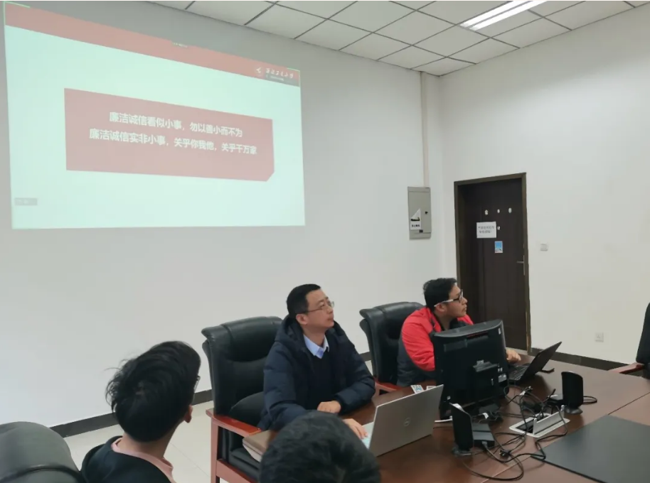 12月1日中午,永利集团304am登录党委副书记彭亮在学院楼119会议室以“线上+线下”的方式讲授题为“廉洁诚信——努力成为德才兼备的栋梁之材”主题党课。党支部全体支委和发展对象共200余人参与本次党课活动。本次活动由辅导员粟嘉主持。