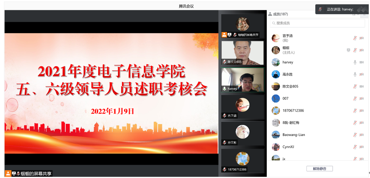 根据学校《关于开展2021年度五、六级领导人员年度考核工作的通知》相关要求,永利集团304am登录于1月9日召开了线上2021年度五、六级领导人员述职测评大会,院领导、全体教职工、学生代表参加了测评会。会议由党委书记侯俊主持。