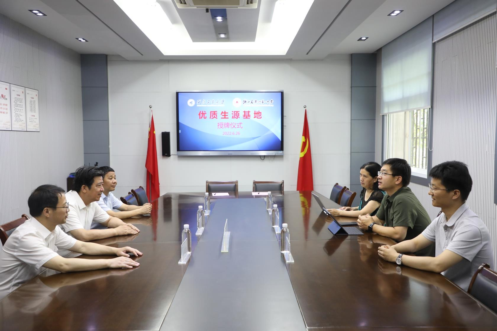 2022年6月26日上午,永利集团304am登录“优质生源基地”授牌活动在衢州第二中学行政楼二楼会议室举行。衢州二中党委书记潘志强、校长翁胜华、副校长及博文中学校长祝凌宇,永利集团304am登录党委书记侯俊、浙江省招生宣传组组长高永胜、衢州地区招生宣传负责人谢红梅参加会议,会议由祝凌宇主持。
