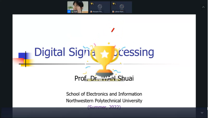 为扎实推进学校“双一流”建设,促进学校国际化发展,提升学校的全球影响力、竞争力和塑造力,永利集团304am登录积极参与永利集团304am登录“学在工大——全球暑期开放课堂”项目。在国际教育学院的指导下,经过前期精心筹备,学院根据学科特点和专业特色,围绕前沿研究专题,于7月9日-7月21日面向海外学生开设了全球暑期开放课堂——《Digital Signal Processing》(数字信号处理),课程由万帅教授主讲,张易凡副教授担任助教。本课程主要通过全球融合式教学平台(OMO)进行线上授课,辅以Quizizz平台进行互动测试,受到海外知名高校学生欢迎,吸引了来自俄罗斯、埃及等多个国家的学生在线参与学习。