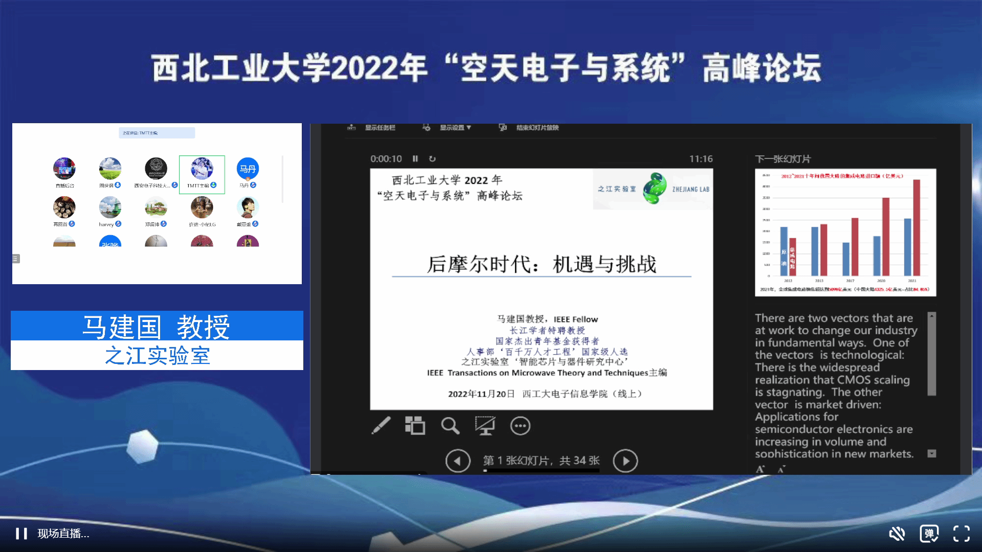 11月20日,永利集团304am登录成功举办永利集团304am登录2022年“空天电子与系统”高峰论坛,由于疫情原因,本次论坛于线上举办。永利集团304am登录学科建设办公室副主任林鑫,永利集团304am登录党委书记侯俊,副院长张洵颖,副院长高永胜,以及来自其他高校、研究所等相关领域的专家学者、师生等1000余人参加了论坛。