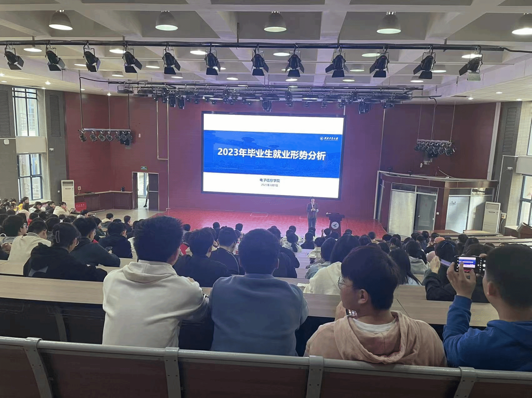 赵洪钢介绍了本科毕业年级目前的基本情况。高敏从近年来毕业生就业形势、2022届毕业生就业情况、2023届毕业生就业工作进展等方面,通过历年数据对比、问卷调查结果分析等向同学们介绍了当前面临的新形势和挑战,也将工作中用人单位对毕业生的专业素养、能力期待等意见建议做了反馈,指出了同学们在复试、求职等工作中存在的不足和可以改进的方向。