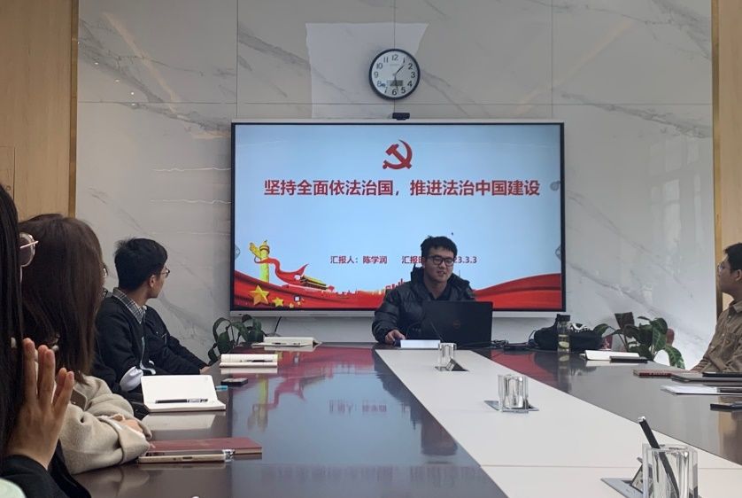 陈学润同志首先回顾了习近平总书记在党的二十大开幕会上的讲话,全面依法治国是国家治理的一场深刻革命,关系党执政兴国,关系人民幸福安康,关系党和国家长治久安。同时,分别从“完善以宪法为核心的中国特色社会主义体系”、“扎实推进依法行政”、“严格公正司法”、“加快建设法治社会”四个方面展现了国家在依法治国方面做出的努力。最后,陈学润同志以自己的家乡镇安县、长安校区今昔对比和当下的“考公热”为例,向我们讲述了许多发生在身边的许多小事情,无一不体现出 “依法治国”基本方略下我们取得的重大成果。