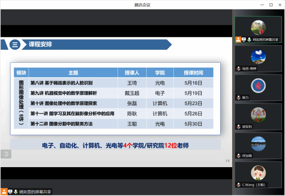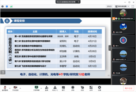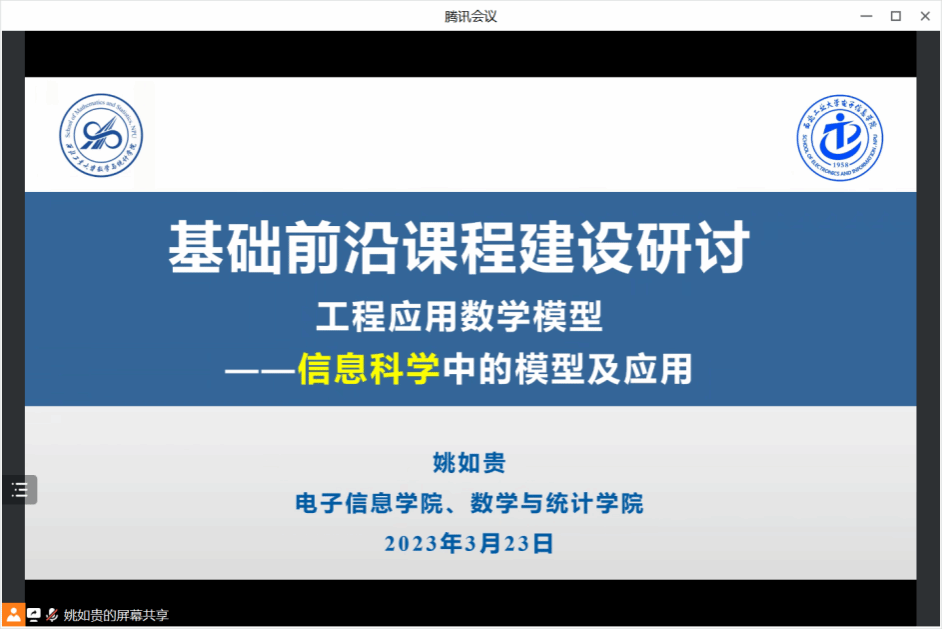 随后,《工程应用数学模型——信息科学中的模型及应用》负责人、永利集团304am登录副院长姚如贵教授对该课程的整体安排进行了介绍。该课程是一门交叉性高、挑战度高的精品基础交叉前沿课程,强化应用牵引,注重学科交叉,以信息处理与智能控制问题为主线,由永利集团304am登录、自动化学院、计算机学院、光电与智能研究院等4个单位12位老师共同打造,讲授通信信号处理、信息融合、搜索与挖掘、图像视频分析与理解等关键技术,包括信息与控制、图形图像处理等内容。希望通过本次授课,能够帮助学生了解信息领域的新技术,掌握复杂问题的解决思路和方法,提升学生的科学素养和科研能力。
