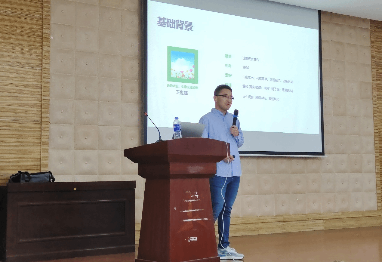 随后,王世雄以《学习与科研经验的分享、交流和探讨》为题展开分享。他先以自身经历为基础,为同学们讲解自身求学过程中学习、生活、心态等多方面的所感所获,又从本科生和研究生不同学习阶段的视角深入浅出的介绍了专业选择、学习规划、发展机遇等方面的经验、见解。