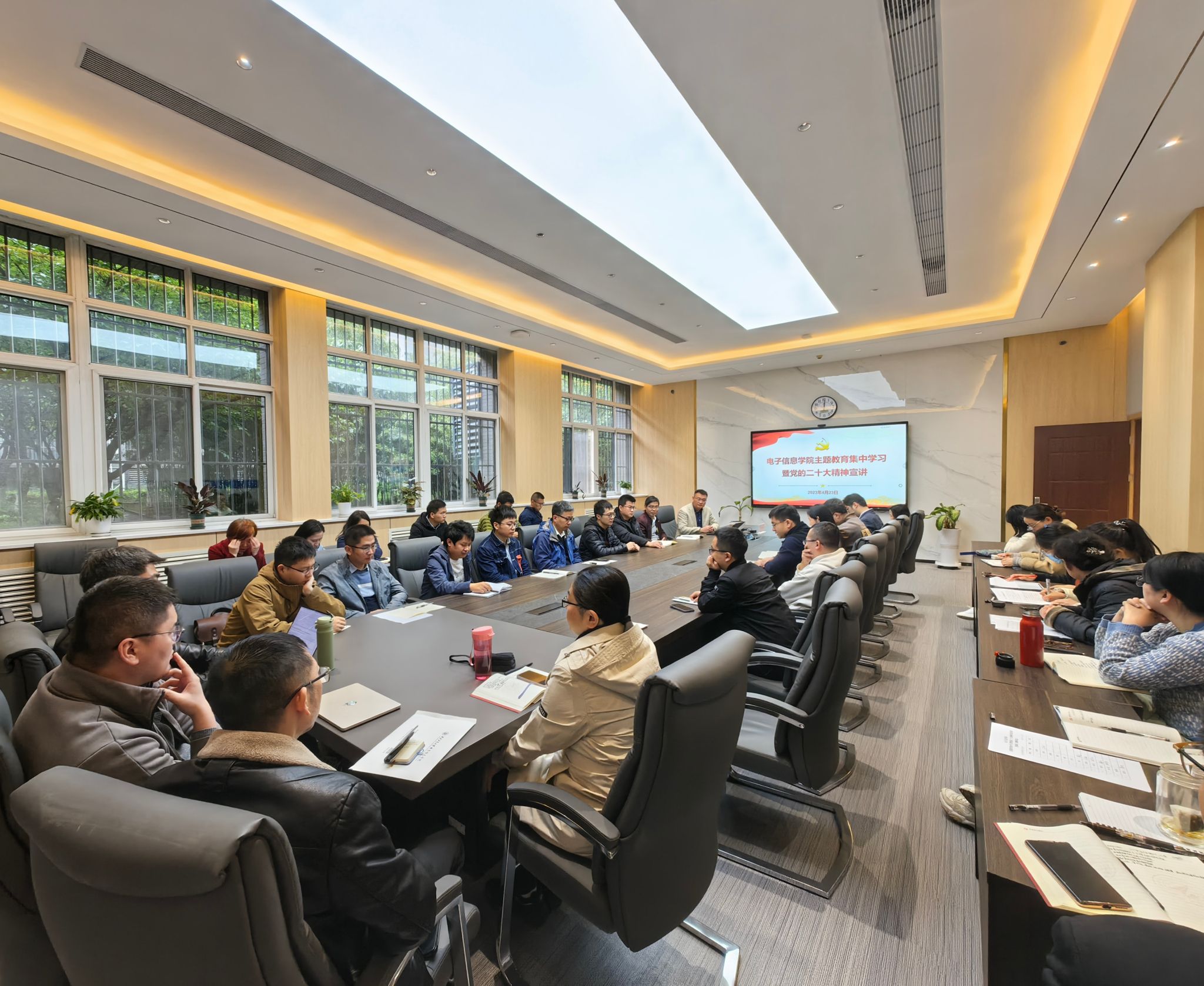 侯俊在总结发言中表示,此次宣讲报告主题鲜明、重点突出,既有理论性、又有实践性。希望学院教职工能以习近平新时代中国特色社会主义思想为指导,切实将主题教育和党的二十大精神结合起来,开展有组织的科研,把力量凝聚到学院科研高质量发展的行动计划上来,稳步提升学院科研综合实力,助力青年教师快速成长。