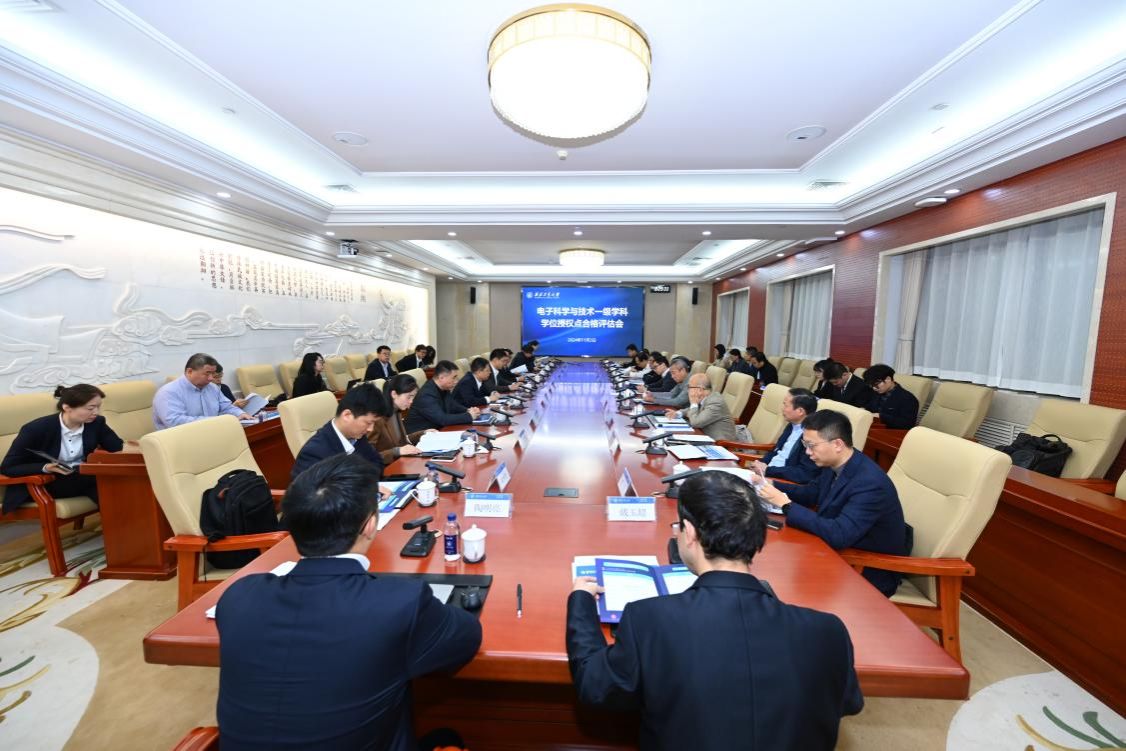 2024年11月3日,永利集团304am登录电子科学与技术一级学科学位授权点合格评估评审会在友谊校区国际会议中心第二会议室顺利召开。评审专家组由第七届、第八届学科评议组成员以及国内知名专家组成,包括南京大学施毅教授、北京大学张兴教授、清华大学孙洪波教授、吉林大学卢革宇教授、西安电子科技大学张进成教授、电子科技大学李斌教授、空军工程大学吴德伟教授、西安交通大学李飞教授、东南大学吕俊鹏教授。永利集团304am登录发展规划处(学科建设办公室)、研究生院、人力资源部、党委学生工作部(学生处)等相关职能部门领导出席会议。永利集团304am登录领导班子成员、电子科学与技术学科相关师生代表等参加了本次会议。会议由永利集团304am登录党委书记侯俊主持。