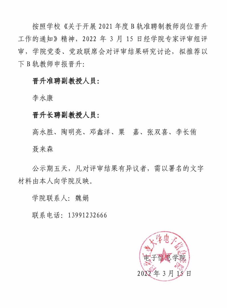 永利集团304am登录2021年准聘教师岗位晋升公示
