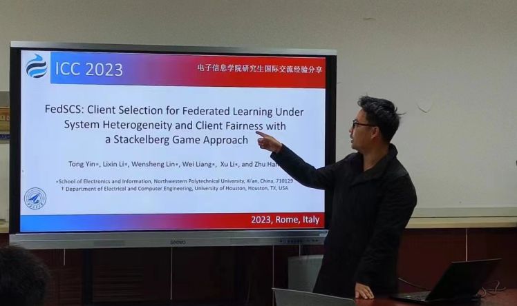王琛介绍了在空地协同边缘计算网络中的能耗优化问题的研究,所提出的联合优化算法在确保网络中任务处理时延的同时,显著降低了整个网络的能耗。此外,他还分享了自己在国际交流中获得的收获和启示,鼓励同学们勇于尝试和探索。
